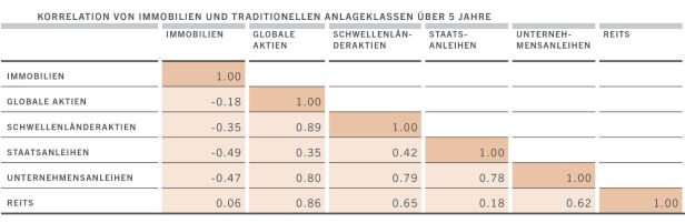5-Jahres-Korrelation von Immobilien zu traditionellen Anlageklassen