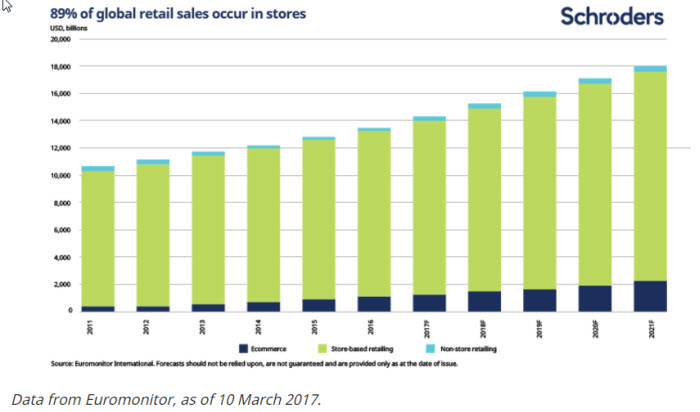 This holds ramifications for the world’s shopping centres and malls as retailers re-evaluate their 'bricks and mortar' store strategies. Investors in commercial real estate funds, which often own retail premises, must understand the implications of these trends. As investors in global cities, we have been closely monitoring developments.