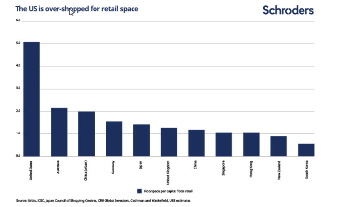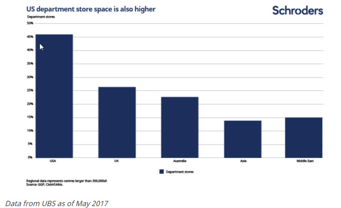 The situation in the US is further aggravated by the number of department stores. These outlets have felt the ill-winds of changing shopping behaviours most acutely.