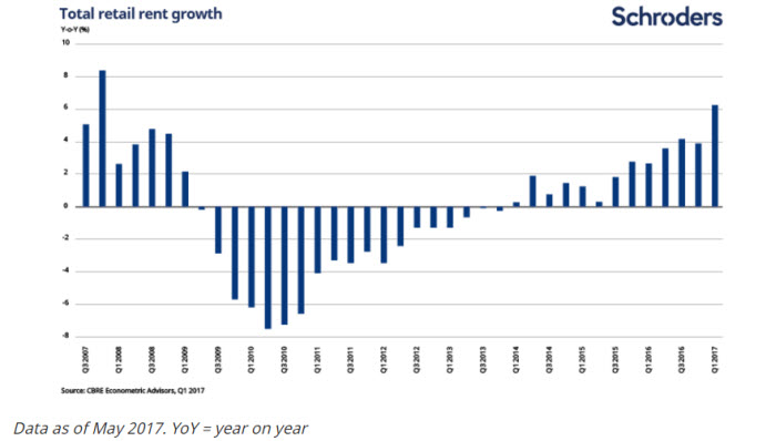 It should also not be forgotten that retail rents, which declined between 2009 and the end of 2013, are rising again. In the first quarter of 2017, rents increased at an annual rate of 6%, nearly double the rate of a year earlier.