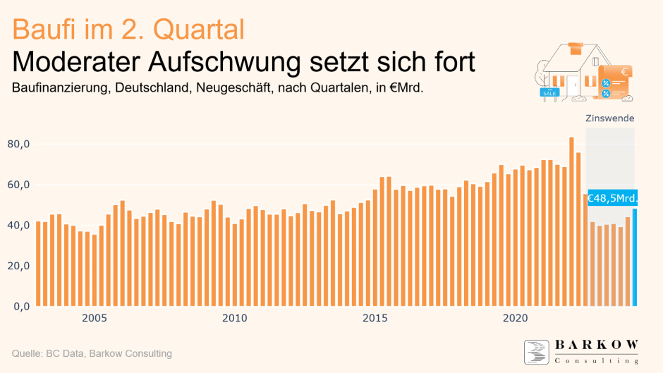 Das Baufinanzierungsneugeschäft verzeichnet das beste Quartal seit der Zinswende.