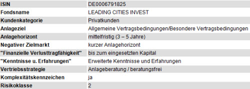 Die erforderlichen Zielmarkt- und Kostentransparenzdaten werden selbstverständlich rechtzeitig über WM-Daten eingemeldet. Damit sind auch für den LEADING CITIES INVEST die Voraussetzungen nach MiFID II zum Jahresanfang 2018 gegeben.