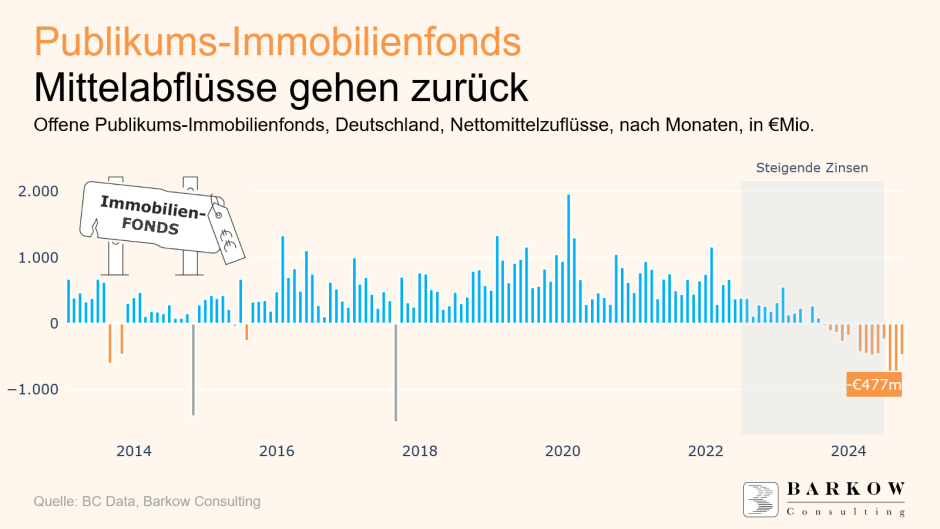 Die offenen Immobilien-Publikumsfonds mussten im August zum vierzehnten Mal in Folge Nettomittelabflüsse hinnehmen.