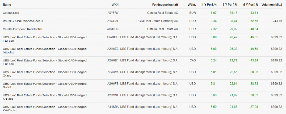 Die zehn besten Offenen Immobilienfonds in fünf Jahren