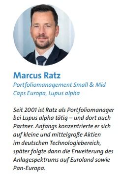 Ratz: Die erste, quantitative Prozessstufe reduziert das Anlageuniversum um rund 85 Prozent. Die verbleibenden rund 150 Unternehmen schauen wir uns ganz detailliert an, um die aus unserer Sicht besten rund 35 Unternehmen für unser konzentriertes Portfolio auszuwählen. Hierfür kommt die Bottom-up-Auswahl zum Tragen. Bedeutsam ist auch die Marktpositionierung des Unternehmens, gerade in Nischenmärkten, denn Marktführer haben Preissetzungsmacht und können bessere Margen als der Wettbewerb erzielen. Kern unseres Prozesses sind aber die mehr als 1500 persönlichen Unternehmensgespräche unseres Small- & Mid-Cap-Teams pro Jahr, um uns von der Qualität und Strategie des Managements sowie vom Potenzial und der Krisenresistenz des Unternehmens zu überzeugen. Dieser Bottom-up-Auswahlprozess hat sich die letzten 20 Jahre bei Lupus alpha hervorragend bewährt.