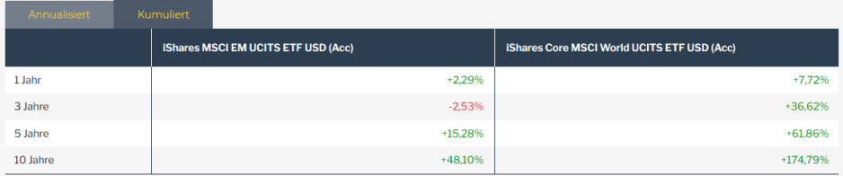 nicht rentiert haben. So wiesen die Emerging Markets bei nahezu identischer