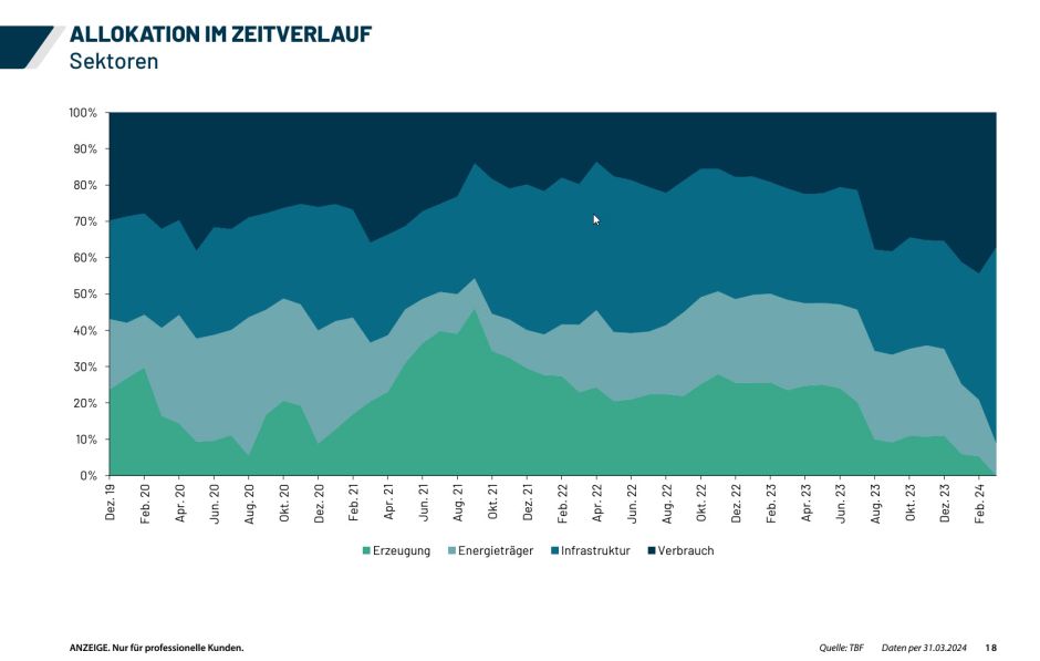 Aktuell sind über 90 Prozent aller Titel aus den Sektoren Infrastruktur und Übertragung. Im 100 Millionen Euro schweren Portfolio, das in allein in diesem Jahr rund elf Prozent zugelegt hat, befinden sich im Schnitt 30 bis 50 Aktienwerte. Derzeit stammen 44 Prozent der Titel aus Europa und 41 Prozent aus den USA.