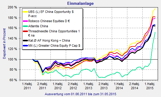 Fondsmanager finden jedoch weitere attraktive Fonds, welche in den chinesischen Markt investieren. Vor allem die langfristige Performance des UBS (L) EF China Opportunity Fonds (ISIN: LU0067412154) kann überzeugen. Mit einer €uro-FondsNote, welche das Rendite-Risiko über den Zeitraum von vier Jahren bewertet, von 1 erreichte er ein Plus von 49,2 Prozent im laufenden Jahr. 1,32 Milliarden Euro sind in den Fonds investiert. Die Sharpe Ratio liegt bei 2,27. Der Fonds investiert zu 30 Prozent in Finanzdienstleistungen und nur zu je rund 3,4 und 1,7 Prozent in Basiskonsumgüter bzw. Gebrauchsgüter. Informationstechnologien machen 18 Prozent des Portfolios aus. Insgesamt sind 80 Prozent in China investiert, 20 Prozent in Hongkong.