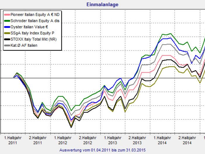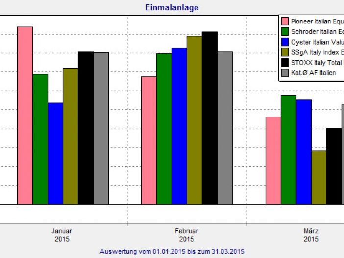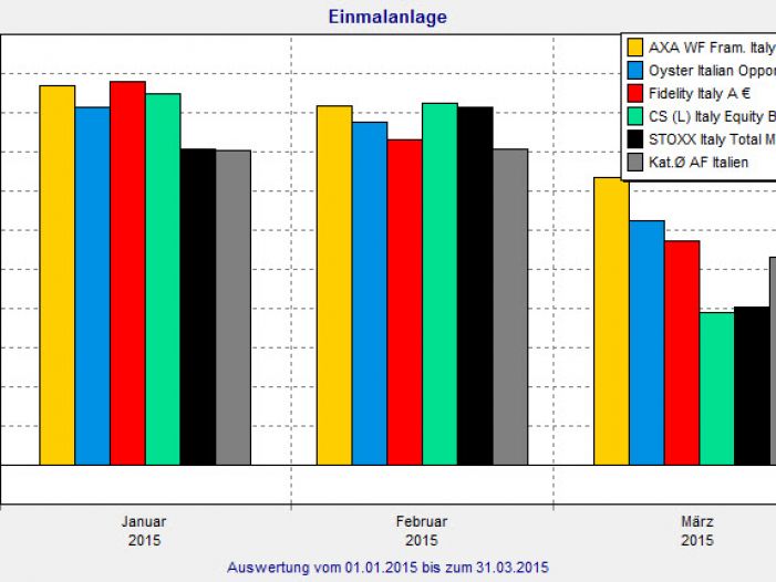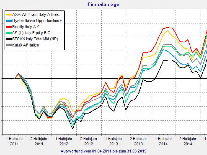 Positive Nachrichten aus dem in den letzten Jahren wirtschaftliche arg gebeutelten Italien: Der Aktienindex STOXX Italy Total Market legte in den ersten drei Monaten 2015 um 22,7 Prozent zu. Aktienfonds des Mittelmeerlandes beendeten das erste Quartal mit einem Plus von 22,9 Prozent sogar noch ein bisschen besser. Zugegeben: Die Peergroup „Aktienfonds Italien“ des FINANZEN FundAnalyzer (FVBS) ist mit lediglich acht Produkten nicht wirklich groß. Aber keines dieser acht Produkte rentierte 2015 bisher mit weniger als 20 Prozent. Grund genug, diese Kategorie näher zu betrachten.