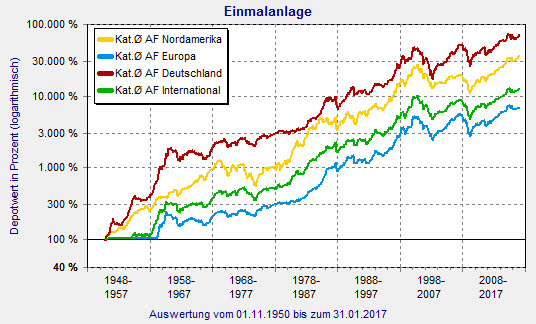 Ein Wahlsieg Donald Trumps sei Gift für die Finanzmärkte – dies glaubte man vor der Wahl. Doch seit der Milliardär gewonnen hat, haussiert Wall Street. US-Indizes jagen von einem Hoch zum Nächsten: Ende Januar überschritt der Dow Jones erstmals die Marke von 20.000 Zählern. Etwas weniger rekordverdächtig sieht dagegen die Bilanz der Kategorie Aktienfonds Nordamerika aus. Im Januar 2017 erzielt sie ein Zuwachs von 0,5 Prozent. Aktienfonds Deutschland können dagegen mit einem Zuwachs von 1,7 Prozent glänzen. Im Dezember 2016 konnten nordamerikanische Aktienfonds im Schnitt noch rund zwei Prozent an Wert gewinnen. Am Jahresende blieb ein Plus von 10,6 Prozent übrig.