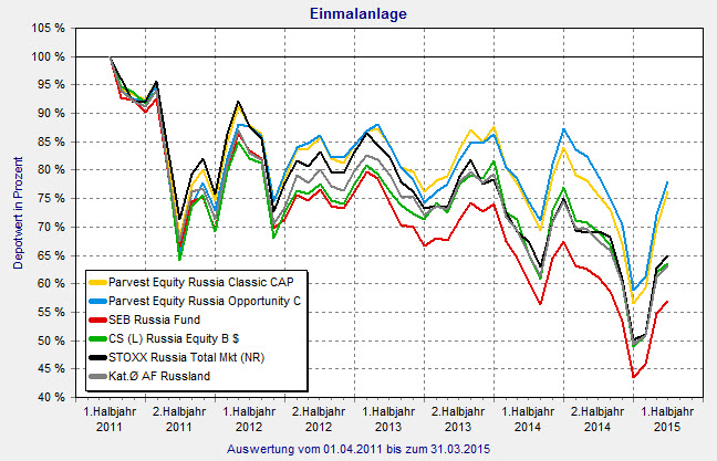 Aktienfonds Russland: Über vier Jahre mit negativer Entwicklung