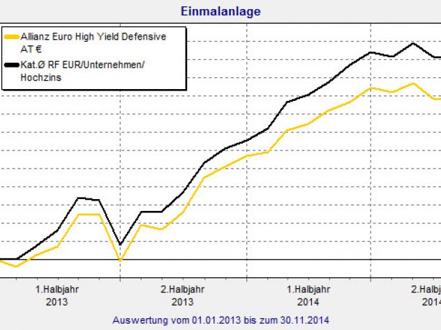 Der Allianz Corporate Bond Europa High Yield (ISIN: LU0110014080) hat ein Gesamtvolumen von 362 Millionen Euro. Die „A-Euro“-Tranche, mit der €uro-FondsNote 3 bewertet, schaffte in diesem Jahr (Stand: 30. November 2014) ein Plus von 5,3 Prozent. Über den Zeitraum der vergangenen drei Jahre steigerte der Fonds seinen Wert um 47,5 Prozent – bei einer Sharpe Ratio von starken 2,06.