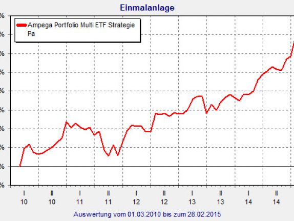 Dazu zählt auch der Ampega Portfolio Multi ETF Strategie (ISIN: DE000A0NGJ69), der im Januar 2000 aufgelegt wurde. Der 30 Millionen Euro große Fonds ist zu rund 50 Prozent in Aktienfonds und zu rund 30 Prozent in Rentenfonds investiert. Der Rest des Portfolios besteht aus alternativen Investments und Derivaten. Im laufenden Jahr steht für den Fonds bisher ein Plus von 4,9 Prozent, 2014 beendete er mit 9,4 Prozent. Über drei Jahre schaffte der ETF eine Wertsteigerung von 22,2 Prozent (Sharpe Ratio: 0,76) und über fünf Jahre von 35,6 Prozent (Sharpe Ratio: 0,53).