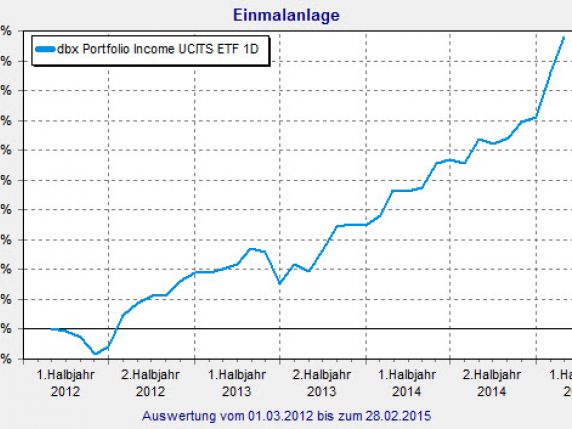 Finanzberater, deren Kunden weniger Risiko bevorzugen, sollten sich den db x-trackers Portfolio Income UCITS ETF (ISIN: IE00B3Y8D011) genauer anschauen. Dessen maximale Aktienquote ist auf 30 Prozent begrenzt. Aufgelegt wurde der Fonds im Februar 2011 und hat kürzlich die FondsNote 2 erhalten. Warum? Zum Beispiel weil der ETF in den vergangenen drei Jahren eine Wertentwicklung von 24,5 Prozent bei einer Sharpe Ratio von 1,19 hinlegte. Das vergangene Jahr schloss der rund zwölf Millionen Euro große ETF mit einem Plus von 8,3 Prozent, in den ersten zwei Monaten 2015 ging es bereits um 5,7 Prozent nach oben. Die jährlichen Pauschalkosten sind mit 0,65 Prozent nochmal ein bisschen günstiger als beim Total Return Portfolio. Zudem schüttet die Income-Variante die Erträge aus.