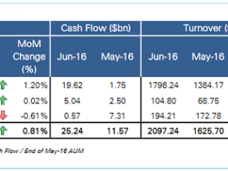 Die Entscheidung der Briten, der Europäischen Union den Rücken zu kehren, hat an der Börse für viel Bewegung gesorgt. Der Umsatz börsengehandelter Fonds mit Europa-Bezug stieg im Juni 2016 um 54 Prozent gegenüber dem Vormonat Mai. Unter dem Strich bleibt bei ETFs im laufenden Jahr von Januar bis Juni ein Plus von netto 88,18 Milliarden US-Dollar.