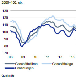 Für den weiteren Verlauf des Jahres erwartet Stobbe, dass deutsche Unternehmen von einer höheren Dynamik auf den wichtigsten Absatzmärkten profitieren können. Allerdings nicht innerhalb der EWU: „Für die Eurozone erwarten wir 2013 insgesamt einen Rückgang des BIP um 0,6 Prozent.“ Zwar geht die Expertin davon aus, dass sich die fiskalischen Entzugseffekte im Laufe des Jahres abschwächen und sich die Konjunktur ab dem dritten Quartal leicht erholt. Der deutschen Industrie dürfte dies jedoch nur schwache Impulse geben. Daher gründet die Hoffnung vor allem auf China und den USA. „Für China rechnen wir mit einer leichten Beschleunigung des BIP-Wachstums auf 8,2 Prozent im Jahr 2013 von 7,7 Prozent im letzten Jahr“, so Stobbe. Eine expansivere Wirtschaftspolitik stütze die dortige Konjunktur. Gründe für diese Annahme sieht sie unter anderem im chinesischen Einkaufsmanagerindex, der sich in den letzten Monaten stabilisiert habe, und in den PKW-Verkäufen im Reich der Mitte. Diese hätten im vierten Quartal 2012 und im ersten Quartal 2013 zulegen können. Gedämpft bleibe dagegen die Nachfrage im Maschinenbau.
