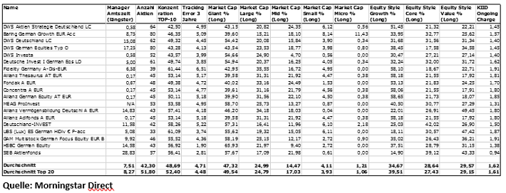 Die erfolgreichen Fonds zeichnen sich auch dadurch aus, dass sie im Durchschnitt eine deutlich höhere Anzahl an Aktien im Portfolio halten als die meisten anderen Fonds in derselben Kategorie. Insgesamt hat es sich für die Fondsmanager zudem gelohnt, auch abseits des sehr konzentrierten Universums der deutschen Blue Chips zu investieren.