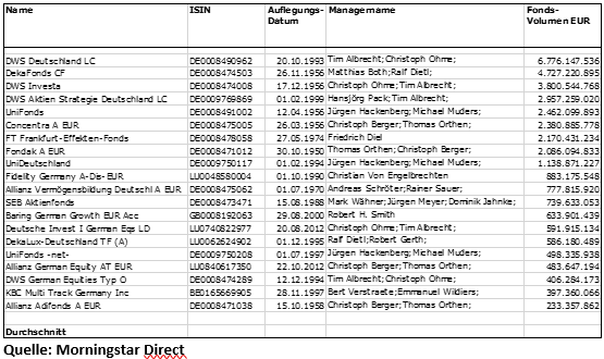 Performance-Ausreißer nach unten sind nur der DekaFonds, der UniFonds, der FT Frankfurter Effekten Fonds, der DekaLux-Deutschland und der UniFonds –net-. Es sind fünf vergleichsweise große Fonds. Als Gründe für das trotzdem hohe Volumen vermutet Morningstar eigene Vertriebsnetze, die Fremdfonds, auch wenn sie eine bessere Performance aufweisen, benachteiligen.