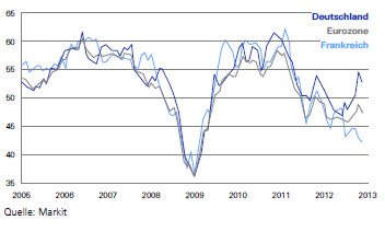 Die erste Schätzung der Einkaufsmanagerindizes der Eurozone für Februar enttäuschte auf ganzer Linie. Der signifikante Anstieg im Januar kehrte sich im Februar nahezu vollständig wieder um. Die konjunkturelle Erholung verläuft damit in der Eurozone nur sehr schleppend. So ist auch bei der finalen Version der Einkaufsmanagerindizes (Freitag) nicht mit einer merklichen Verbesserung zu rechnen.