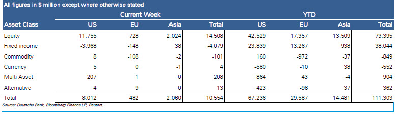 Sowohl in den USA, als auch in Europa und Asien dominieren Aktien-ETFs. Sie generierten 2014 weltweit bisher knapp 54 Milliarden Euro an Nettomitteln. Rentenprodukte kommen auf rund 28 Milliarden Euro. Abflüsse gab es hingegen bei Rohstoff-ETFs: Anleger entzogen ihnen rund 850 Millionen Euro. Anders als in Europa und Asien, wo diese Assetklasse 972 Millionen Euro bzw. 37 Millionen Euro verlor, konnten Rohstoff-ETFs in den USA Zuflüsse von 160 Millionen Euro verzeichnen.