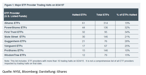 An diesem Tag wurden sogar einige ETFs zeitweise vom Handel ausgesetzt - was recht verwunderlich ist. Denn auch wenn die Underlyings nicht mehr gehandelt werden, können dies ETF-Anteile i.d.R. weiterhin (siehe Griechenland-ETF).