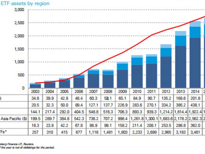 Das in ETFs verwaltete globale Vermögen ist jedoch seit August auf rund 2,7 Billionen US-Dollar gefallen. Ende August hatten die Kursverluste an den Börsen auch eine Verkaufswelle bei den ETFs ausgelöst. „Das war ein Tag, wie man ihn als Händler nur ganz selten erlebt“, zitierte die „Börse Frankfurt“ Carsten Schröder von der Commerzbank Ende August. Verteilt ist es derzeit auf 3.734 Produkte – ein Anstieg von etwa 50 Produkten. Zum Vergleich: 2003 gab es nur 257 ETF-Produkte.