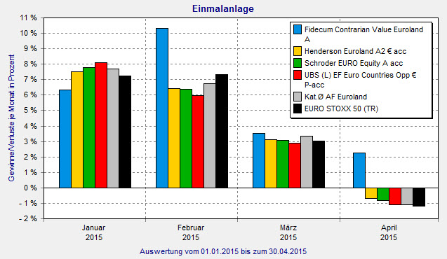 95 Milliarden Euro. Das ist der Betrag, für den die Europäische Zentralbank (EZB) zwischen dem 9. März und dem 1. Mai 2015 öffentliche Schuldtitel erwarb und damit ihr Programm zum Kauf von Staatsanleihen vorantreibt. Ziel des Programms: Die Inflationsrate soll ansteigen. Weiterer Nebeneffekt: Die Aktienmärkte florieren. Getreu dem Motto: Die Flut hebt alle Boote. Der Euro Stoxx 50 beispielsweise steigerte seinen Wert seit Jahresbeginn um 17,2 Prozent (Stand: 30. April 2015). Für Aktienfonds des Euroraums ging es um durchschnittlich 17,5 Prozent nach oben.