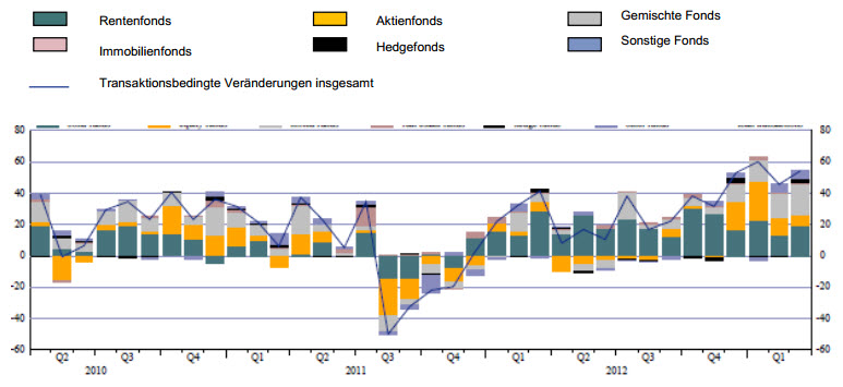 Im Euroraum netto etwa 160 Milliarden Absatz im ersten Quartal 2013. Rentenfonds mit stärkstem Wachstum.