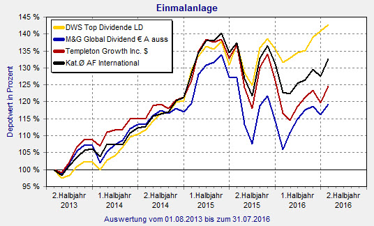 Zu den High-Flyern der Kategorie gehört aber auch der Credit Suisse Equity Fund (Lux) Global Value (ISIN: LU0268334777). Dabei folgt der Fonds dem „Deep-Value“-Ansatz nach Graham und Dodd und investiert weltweit in unterbewertete Unternehmen. 13,5 Prozent geht es mit dieser Strategie per Ende Juli 2016 bereits aufwärts. 140 Millionen Euro liegen in dem 2006 aufgelegten Fonds.