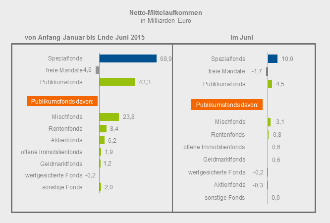 Die deutsche Fondsbranche sammelte im ersten Halbjahr 2015 Nettomittel in Höhe von 109 Milliarden Euro ein. Aktienbetonte Mischfonds sind wieder stärker gefragt.