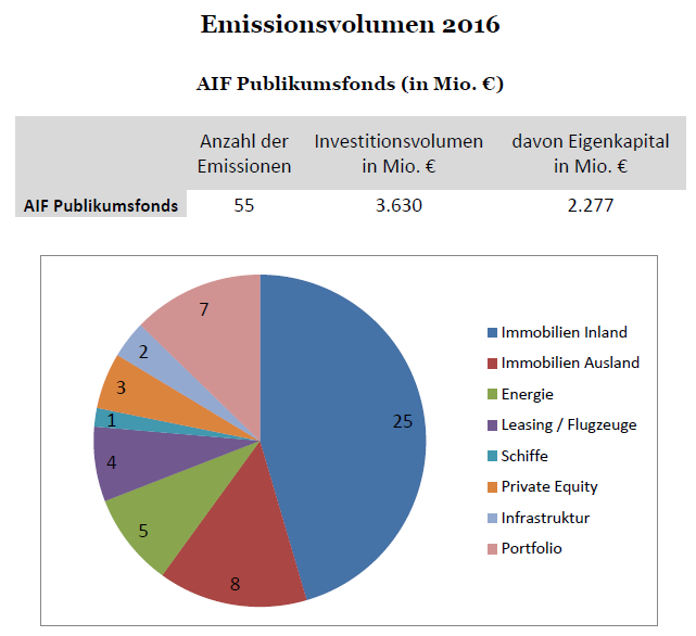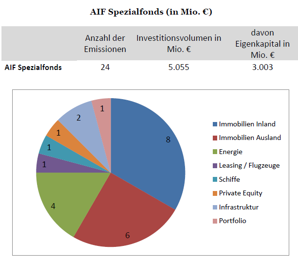 Zu den geplanten Fonds gehören 24 Spezialfonds mit einem geplanten Emissionsvolumen von drei Milliarden Euro (Vorjahr: 1,93 Mrd.) und das Investitionsvolumen bei 5,05 Milliarden Euro (Vorjahr: 3,72 Mrd.) liegen.