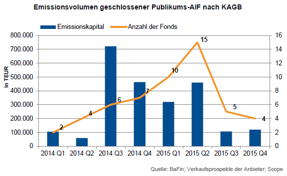 Die Branche befindet sich laut Scope mitten in einer Konsolidierung, die sich auch im Jahr 2016 weiter fortsetzen wird. Anbieter verschwinden aus dem Markt, stellen ihre Kapitalverwaltungs-Gesellschaft (KVG) und damit das Neugeschäft ein und konzentrieren sich auf die Altfondsverwaltung oder das Asset Management.