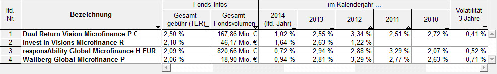 Mikrofinanzfonds im Vergleich: Wertentwicklung bis zum 31. Mai 2014