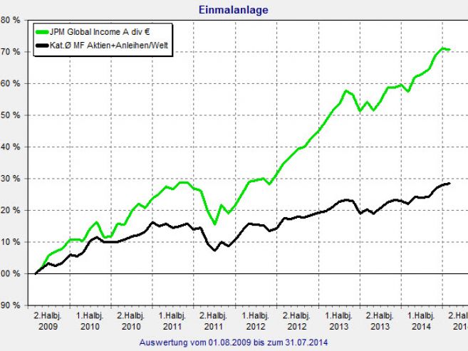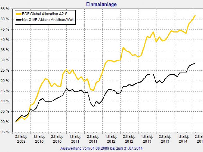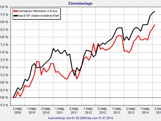 Da stellt sich die Frage, ob die Performance der Mischfonds dem Anlegervertrauen gerecht wird. Als Benchmark dient der Durchschnitt der Peergroup „Mischfonds Aktien und Anleihen/Welt“ des €uro-FundAnalyzer (FVBS). Der Kategoriedurchschnitt kommt im laufenden Jahr (Stand: 31. Juli 2014) auf ein Plus von 4,6 Prozent und entwickelte sich damit schon besser als 2013, das er mit 3,2 Prozent beendete. Über den Zeitraum von drei Jahren steht ein kumuliertes Plus von 12,4 Prozent und über fünf Jahre ging es um 28,6 Prozent nach oben.