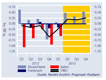 Trotz verbesserter Wachstumsdynamik kein Ende der Rezession für 2013 in Sicht. Wachstum erst 2014.