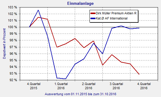 Nicht immer ist drin, was drauf steht. Dieses Prinzip aus der Lebensmittelbranche gilt auch für die Finanzwelt. So gehören Fonds, die den Namen prominenter Finanzexperten tragen, zumeist in die Kategorie „Schall und Rauch“. Ein solches Exemplar ist der Dirk Müller Premium Aktien R (ISIN: DE000A111ZF1). Während es für die Kategorie Aktienfonds International in diesem Jahr immerhin um 1,3 Prozent aufwärts geht, verliert der Fonds per Ende Oktober bereits 8,2 Prozent. Seit Auflegung am 15. April 2015 steht ein Minus von rund zwölf Prozent zu Buche. Dennoch vertrauen Anleger dem als Mr. Dax bekannten Müller bereits 76,7 Millionen Euro an. Investiert wird das Fondsvermögen derzeit in den USA (51,7 Prozent), Deutschland (9,6 Prozent) und Großbritannien (7,8 Prozent). Aber auch Finnland, die Farör Inseln und Belgien sind im Portfolio vertreten. Die drei größten Positionen sind der Halbleiterhersteller und Anbieter von IP-Lösungen für Mobilfunkkommunikation Qualcomm (3,1 Prozent), der Technologie- und Finanzdienstleister Wire Card (drei Prozent) und das Online-Reiseportal Priceline.Com (drei Prozent). Anleger zahlen eine TER von 1,69 Prozent.