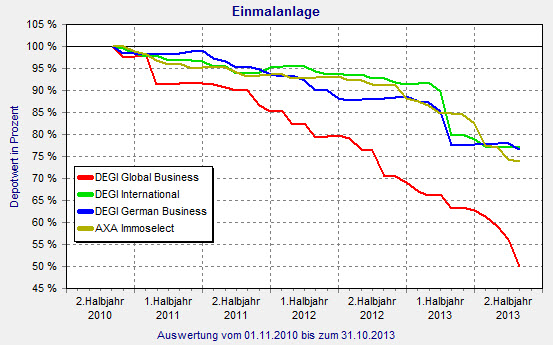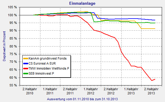 Die risikoärmsten Portfolios haben nach Ansicht von Scope der KanAm grundinvest, der CS Euroreal, der TMW Immobilien Weltfonds sowie der SEB ImmoInvest. Höhere Risiken bestünden bei den drei DEGI-Fonds Global Business, International und German Business sowie dem AXA Immoselect.