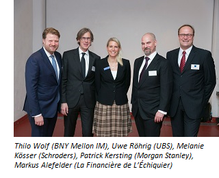 Die Experten Thilo Wolf (BNY Mellon IM), Markus Alefelder (La Financière de L’Échiquier), Patrick Kersting (Morgan Stanley), Melanie Kösser (Schroders) und Uwe Röhrig (UBS), die moderiert vom Diskussionsleiter Dr. Martin Hüfner die aktuelle Lage und die Perspektiven der Finanzmärkte diskutieren, entwerfen gemeinsam ein Szenario, das optimistisch stimmt.