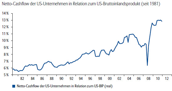 US-Konzerne profitierten stärker von der Globalisierung als ihre internationalen Konkurrenten und seien längst nicht mehr nur von der US-Konjunktur abhängig: „Dank einer Exportquote der S&P-500-Mitglieder von über 40 Prozent profitierten die US-Unternehmen in den letzten Jahren vor allem von dem Aufschwung in den Wachstumsländern“, erläutert Nacken. Dadurch, und durch Kostensenkungsmaßnahmen nach der Finanzkrise, hätten die indexgewichteten Konzerngewinne des S&P 500 im Jahr 2011 auf ein Rekordniveau klettern können und werden nach Analysteneinschätzungen im laufenden Jahr die Marke von 100 überschreiten.