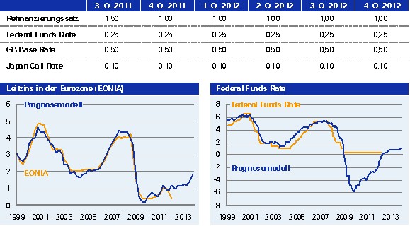 Vor diesem Hintergrund liegt das fundamental gerechtfertigte Niveau für die Rendite zehnjähriger Bundesanleihen auf Basis unseres Prognosemodells derzeit bei 2,4 % – mit steigender Tendenz für die kommenden Monate. Eine fundamentale Schätzung ist natürlich kein Timing-Indikator, sondern zeigt nur, dass die Risiken für steigende Renditen in den kommenden Wochen die Chancen auf weiter fallende Renditen deutlich übertreffen. Wenn sich aber die Staatsschuldenkrise wieder verschärfen oder es zu einem geopolitischen Schock kommen sollte, würde das fundamental gerechtfertigte Niveau entsprechend stark zurückgehen. Im Zuge der expansiver ausgerichteten Geldpolitik der EZB dürfte der ZEW-Index (Di) im März von 5,4 auf 10 gesprungen sein.