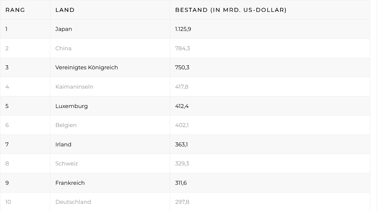 Quelle: Veröffentlichungen des US-Finanzministeriums im Rahmen des Treasury International Capital (TIC) Systems