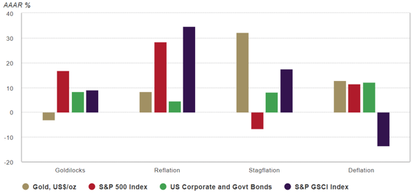 * As of Q2 2021. AAAR % - annualised average (stagflation) adjusted returns. Quelle: Goldhub, Bloomberg, World Gold Council