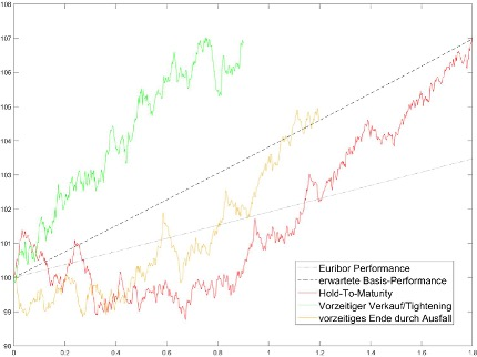 Für die meisten Anleihen ist NB nahe null, weil sich der Markt für die CDS-Kosten am Anleihe-Spread orientiert. Aber es gibt immer ein gewisses Universum von Namen, für welche NB nennenswert positiv ist, und für welche das negative Basis Investment demzufolge interessant ist. Die Gründe für die Existenz dieses Marktsegmentes sind mannigfaltig und basieren häufig auf technisch bedingten Angebot/Nachfrage-Effekten oder Liquiditätsaspekten, für tiefergehende Informationen sei auf diese Ausarbeitung (Link) verwiesen. Anders als bei einem reinen Credit Investment, bei welchem im Falle eines Zahlungsausfalles ein dauerhafter Wertverlust eintreten kann, gibt es für ein negatives Basis Investment nur drei mögliche Szenarien, die allesamt mindestens mit dem Referenzzins zuzüglich NB rentieren: