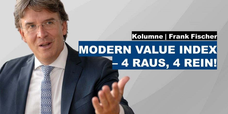 Die Rotationsmaschine wurde wieder angeschmissen: vier raus, vier rein. Genauer gesagt: Beim Frankfurter Modern Value Index stand mal wieder das vierteljährliche Rebalancing an.
