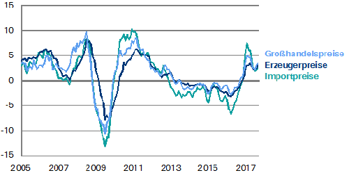Zweifellos ist die EZB-Geldpolitik für die deutsche Wirtschaft zu locker und der Euro-Wechselkurs zu schwach. Die Folge ist ein inflationärer Boom in Deutschland, der bisher nur auf den Finanzmärkten und am Immobilienmarkt sichtbar ist. Zuletzt überraschten jedoch die Konsumentenpreisvorstufen wie Erzeuger-, Großhandels- und Importpreise in Deutschland – im September beschleunigten sie sich sogar.