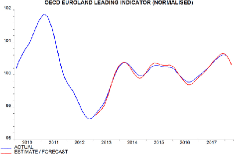 Euroland monetary trends and the OECD’s composite leading indicator continue to soften, suggesting that a recent economic slowdown will extend through late 2018, at least.