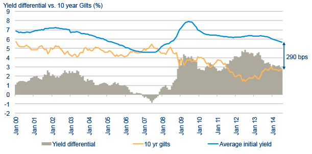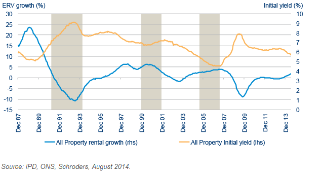 Source: FT, IPD, Bloomberg, Schroders, August 2014.