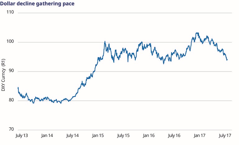 The past six months had seen a gradual erosion of confidence in the dollar amid a growing disillusionment with the prospect of President Trump enacting his pro-growth policies. July has seen further downward pressure as Federal Reserve Chair Janet Yellen expressed surprise at continued weakness in inflation, which indeed continues to puzzle given employment levels.