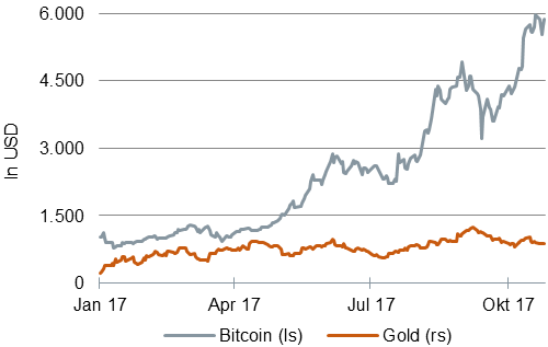 Als Wertaufbewahrungsmittel und als Recheneinheit taugt Bitcoin dagegen bisher jedenfalls nicht. Das liegt daran, dass sie nicht wertstabil ist. Am Jahresanfang lag der Preis bei etwas über USD 1.000, jetzt beträgt er fast USD 6.000. Das ist keine Basis für solides Wirtschaften, sondern eine Ein-ladung zur Spekulation. Hinzu kommt, dass es erhebliche Schwankungen gibt (siehe Grafik). In den ersten zwei Septemberwochen ist der Preis von Bitcoin um über 30 % ge-fallen. Wer will in solch einem Medium sein Vermögen halten? Dies umso mehr als die Schwankungen kaum vorherzusagen sind. Niemand weiß, wer auf dem Markt tätig ist.