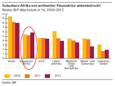 Länder profitieren von Rohstoffboom und politischer Stabilität. Region Subsahara-Afrika rangiert beim Wachstum direkt hinter Asien.
